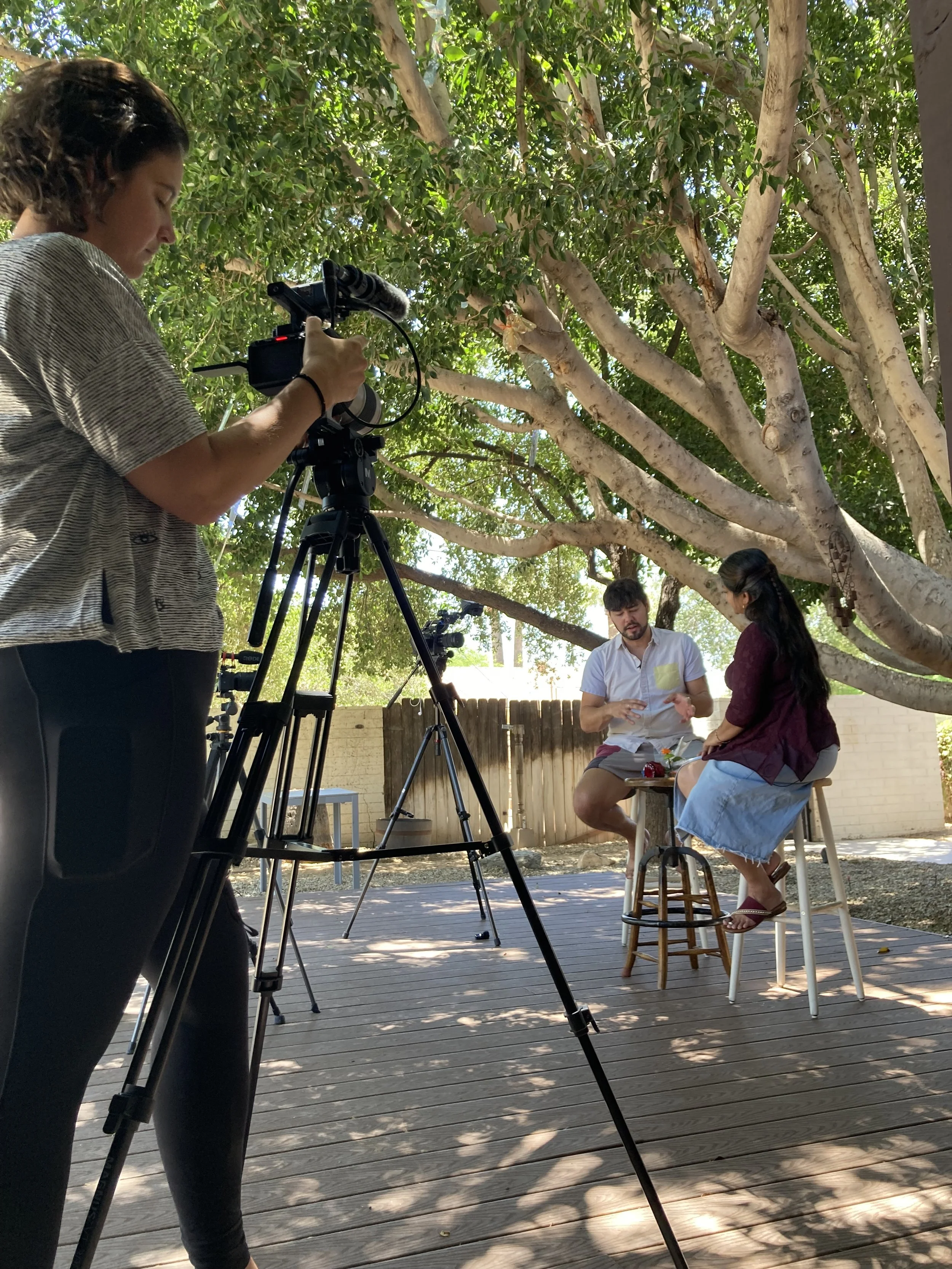 leading a brief reflective meditation with Dr. David Manuel Navarrete while filming instructional videos for ASU's online version of the "International Development & Sustainability" course