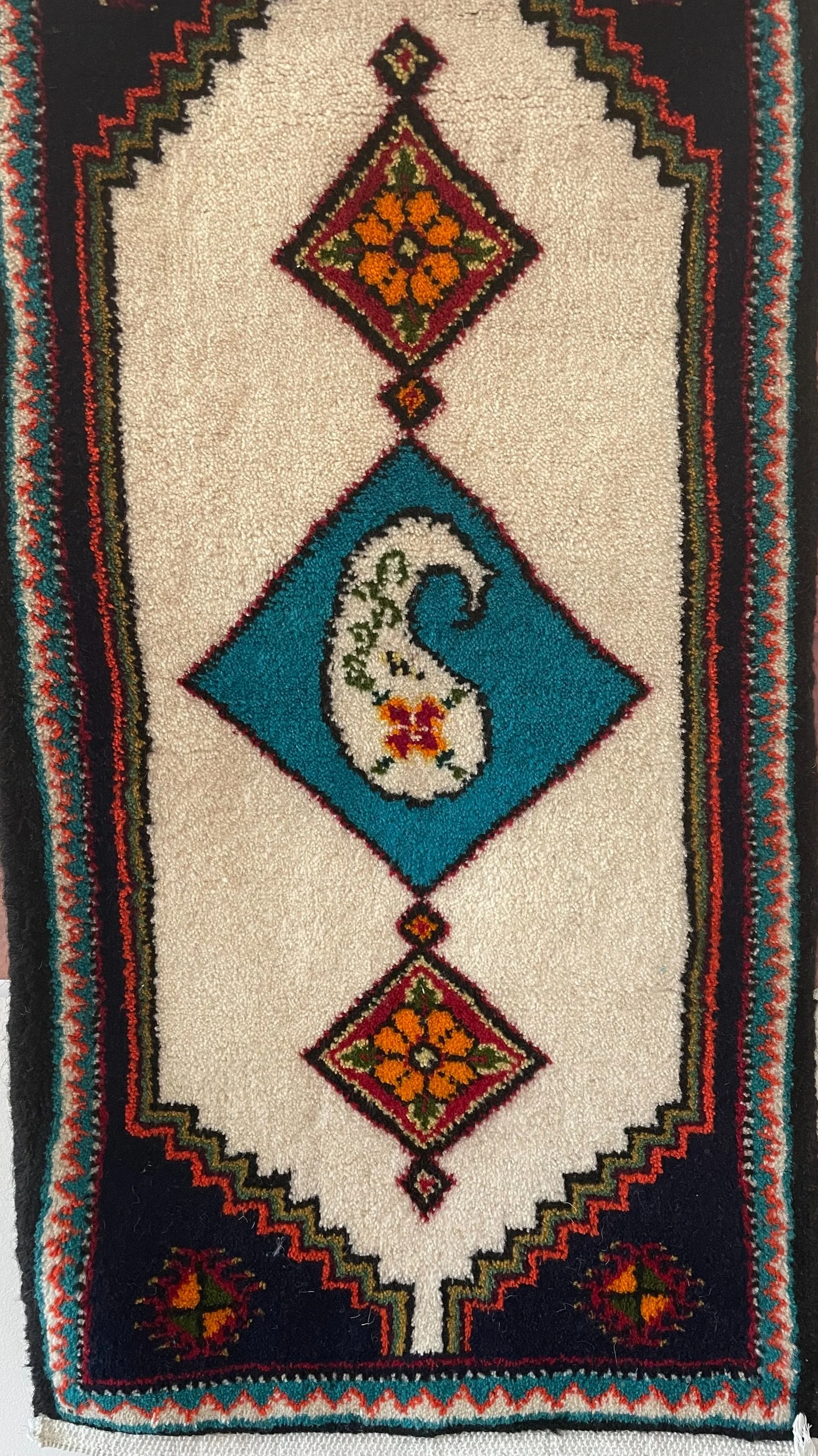when i was a few years old, she wove this small Kelardashti style rug for me during her visit to the US. she used a makeshift loom my father built and wove all the patterns from memory.